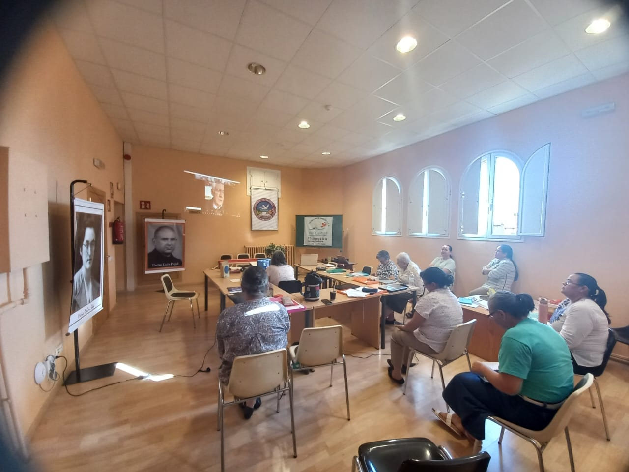 En nuestra eucaristía de hoy recordamos especialmente a las hermanas que ya nos precedieron a la Casa del Padre, memoria agradecida por cada una de ellas y con la certeza de que nos siguen acompañando en nuestro caminar congregacional. Después nos disponemos para continuar el trabajo a partir del documento precapitular para trazar el horizonte desde la experiencia de cada misionera y las personas con quienes compartimos nuestra espiritualidad. Con una previa oración y reflexión personal nos reunimos por grupo para compartir lo que el Espíritu nos va suscitando para plasmarlo. Un bendecido día que culminamos agradeciendo a Dios.