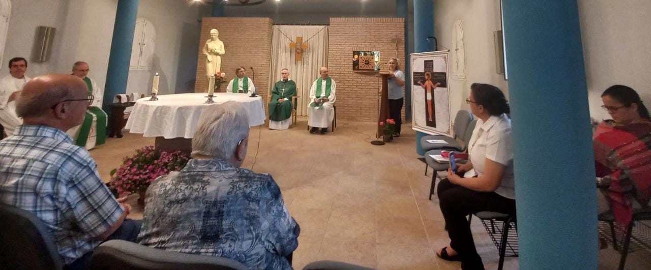 A la tarde tuvimos la eucaristía para agradecer a Dios por este tiempo de gracia que hemos vivido como Institución y como Iglesia. Preside el Obispo Romá Casanova y concelebrada por el provincial de los Misioneros Claretianos, Juan Martín Askaiturrieta y por Juan Carlos y Máximo, padres claretianos y diocesano. Estuvieron también presentes los familiares, colaboradores y amigos de las MIC. Gracias a todos los que nos acompañan en la misión y que también se hicieron presente con su oración.